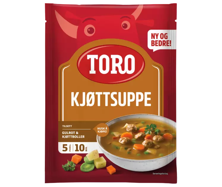 TORO Kjøttsuppe er en tradisjonell klar suppe som blant annet inneholder potet, grønnsaker og kjøtt. Tilberedes med gulrot og kjøttboller.