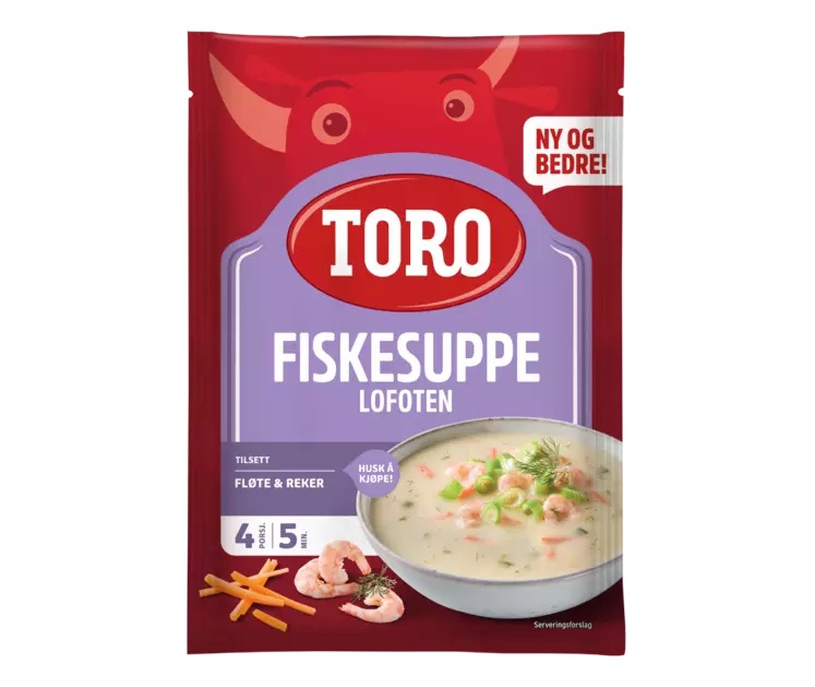 TORO Lofoten Fiskesuppe er en klassisk fiskesuppe som inneholder blant annet gulrot og potet. Tilberedes med fløte og reker. Server gjerne med godt brød ved siden av.